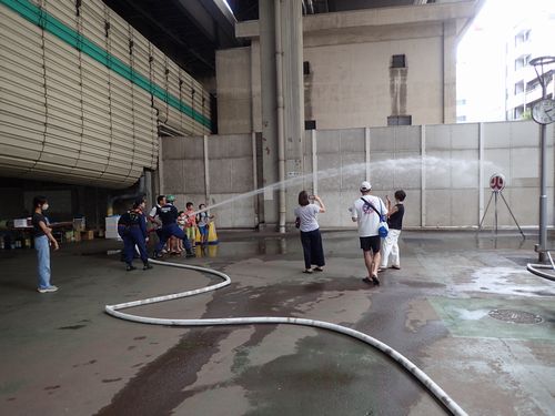 日本橋消防団による消防ホース体験コーナーもありました